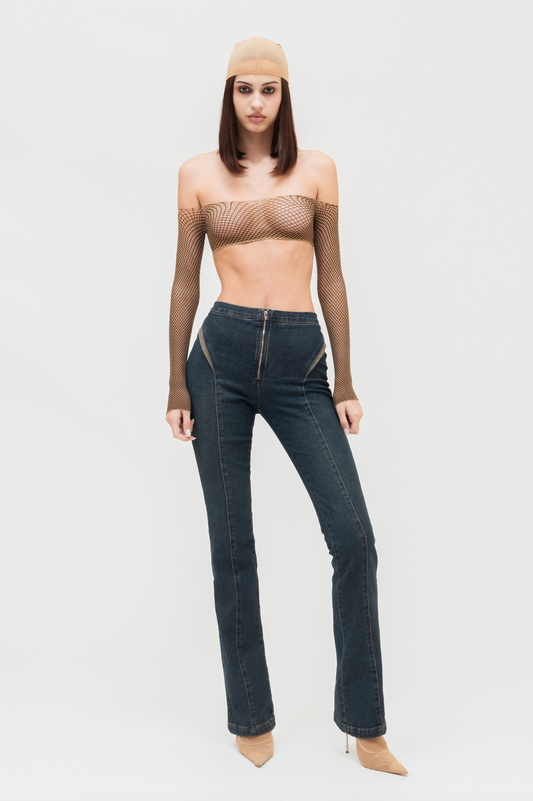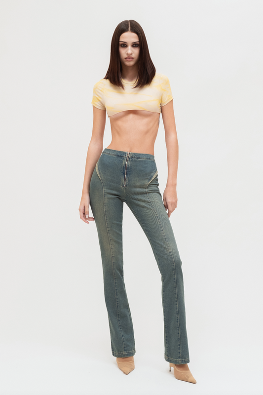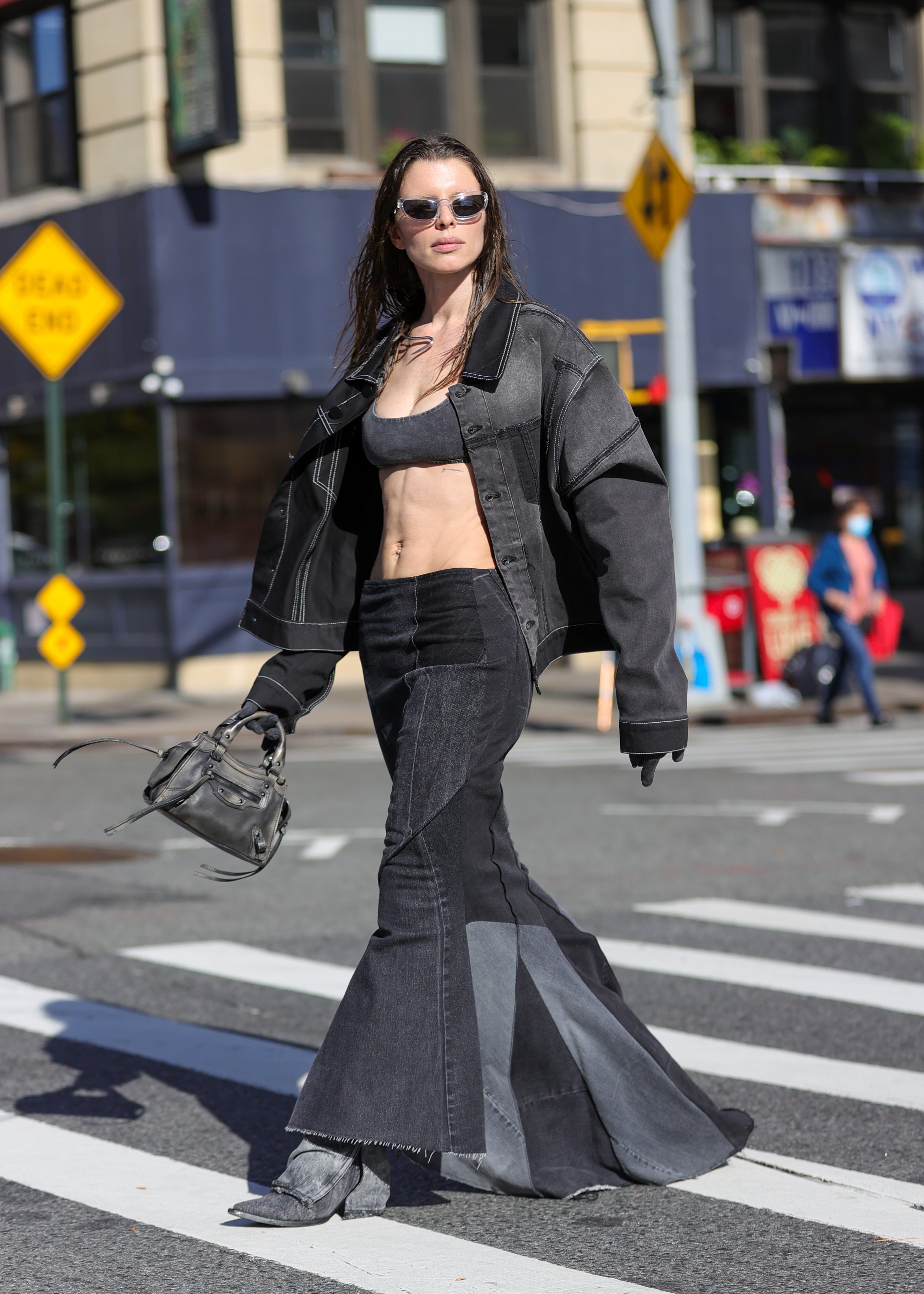 Wearing Sanda Simona upcycled denim skirt on the streets of NY